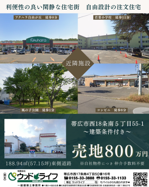 売り土地のご案内(帯広市西18条南5丁目55-1)800万円