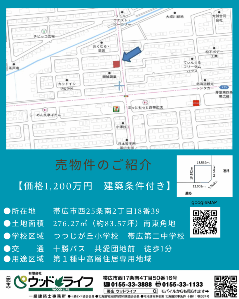 売土地のご案内(帯広市西25条南2丁目18番39)1,200万円