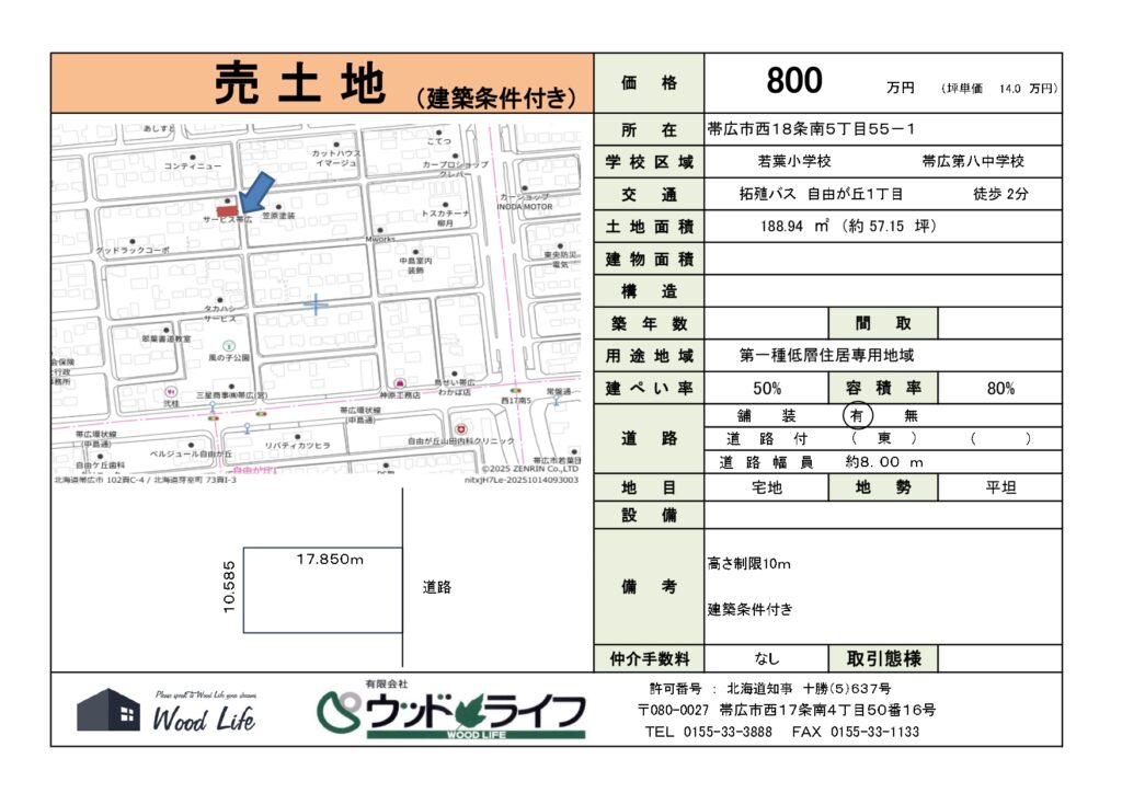売り土地のご案内(帯広市西18条南5丁目55-1)800万円